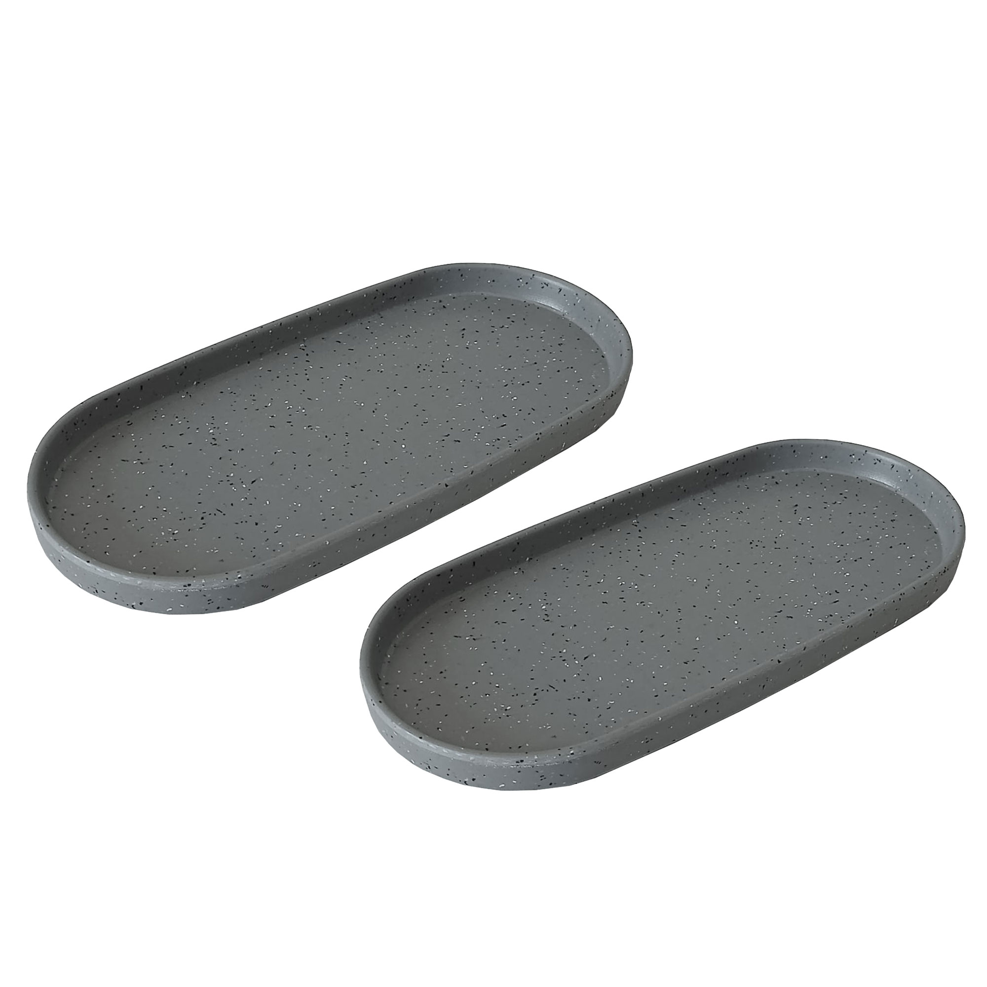 Kit 2 Bandeja Prato Oval 24 X 12cm Melamina Multiuso Cinza
